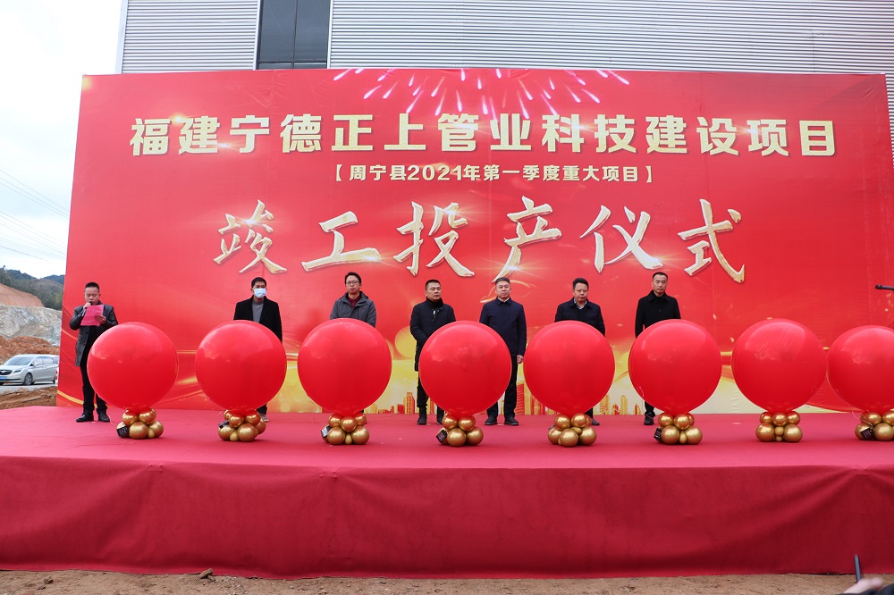 1月28日9时,周宁县不锈钢深加工产业园内,周宁县第一季度重大项目——福建宁德正上管业科技有限公司建设项目竣工投产仪式顺利举行,周宁县常务副县长韦芝富、县人大常委会副主任李孙达等领导,盟信公司领导,正上管业董事长张维娒等负责人参加了仪式。