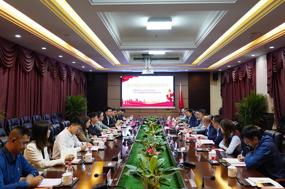 12月7日,广东广青金属科技有限公司综合部党支部与中国联通阳江市分公司办公室党支部在公司办公楼一楼会议室举行了党支部结对共建签约仪式。公司党委书记、董事长王骏,中国联通阳江市分公司党委书记、总经理沈宏平以及双方共建党支部班子成员和党员代表参加了签约仪式。